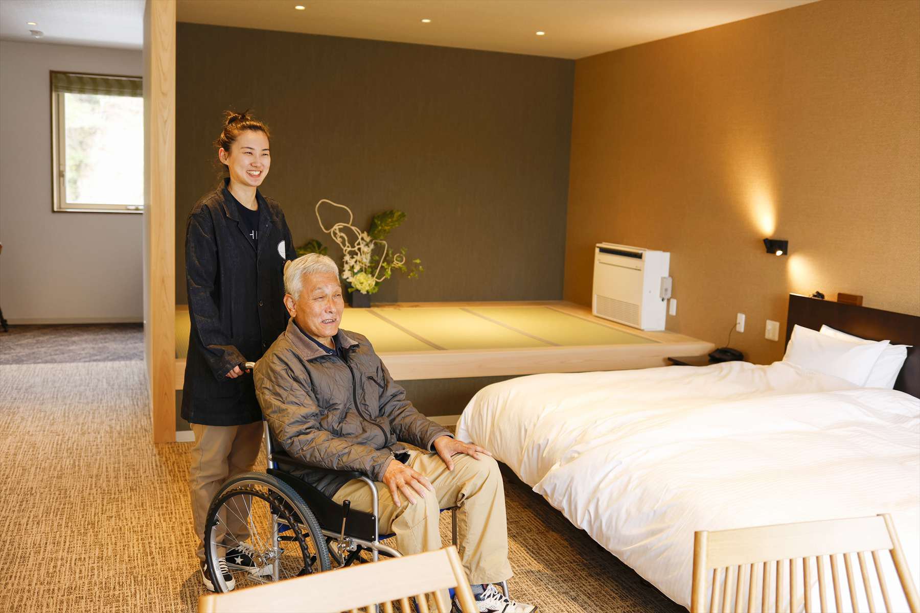 ユニバーサルデザインを取り入れ、車椅子の方やワンちゃんと一緒に泊まれるお部屋など