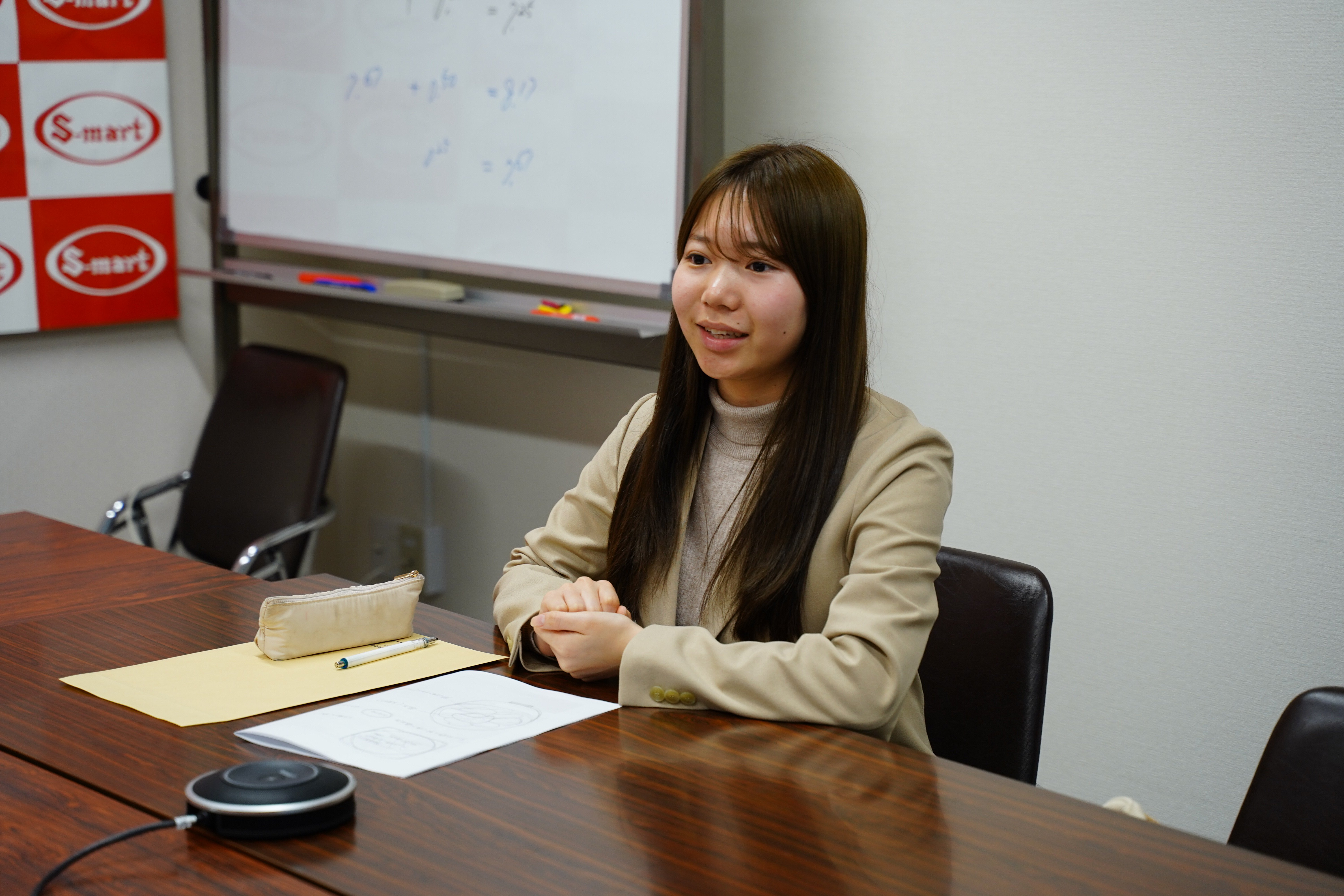 私は将来、地元の鳥取に関わる仕事に就き、地域を盛り上げたいという思いがあります。そのため、1年生のうちからさまざまな業界を知り、視野を広げたいと考えていました。とりふるのアプリでとっとりインターンシップを知り、地域に根ざした企業であるエスマートさんに興味を持ち、今回の1dayインターンシップに参加しました。